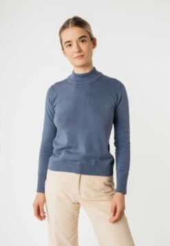 Figurnah geschnittener Strickpullover aus reiner Fairtrade Bio-Baumwolle. Der Pullover hat einen gerippten Stehkragen, leicht überschnittene Schultern und breite Rippbündchen an Ärmel- und Hüftabschlüssen. Der angenehm weiche Feinstrick ist vorgewaschen, somit bleibt die Passform erhalten.