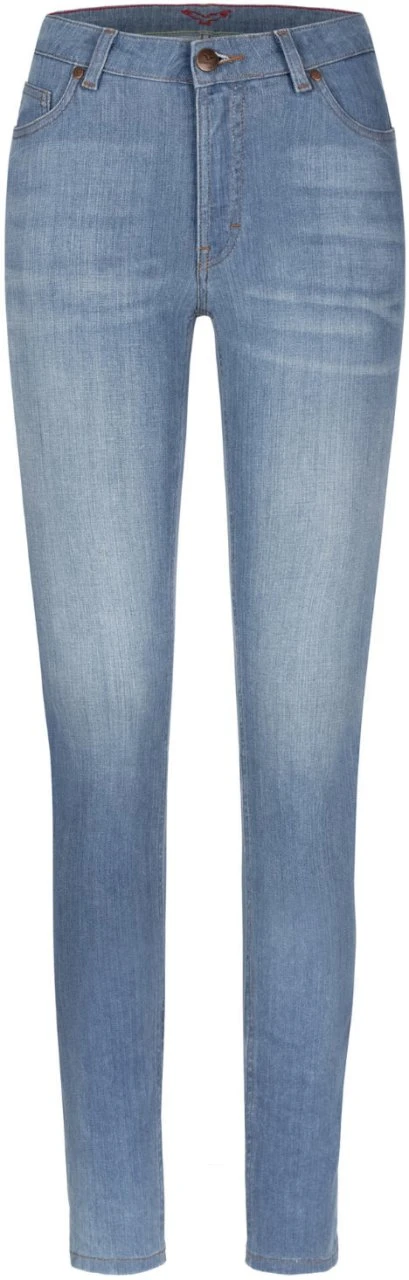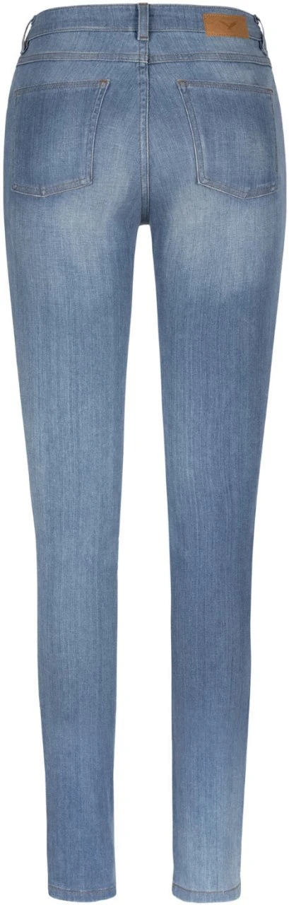 Klassische 5-Pocket Damen Jeans mit schmaler Silhouette und hoher Leibhöhe. Die Hose liegt eng am Körper an, bietet durch einen geringen Elasthananteil jedoch Bewegungsfreiheit. Das angebrachte Patch am Bund besteht aus recyceltem Papier. Die Jeans ist vegan.