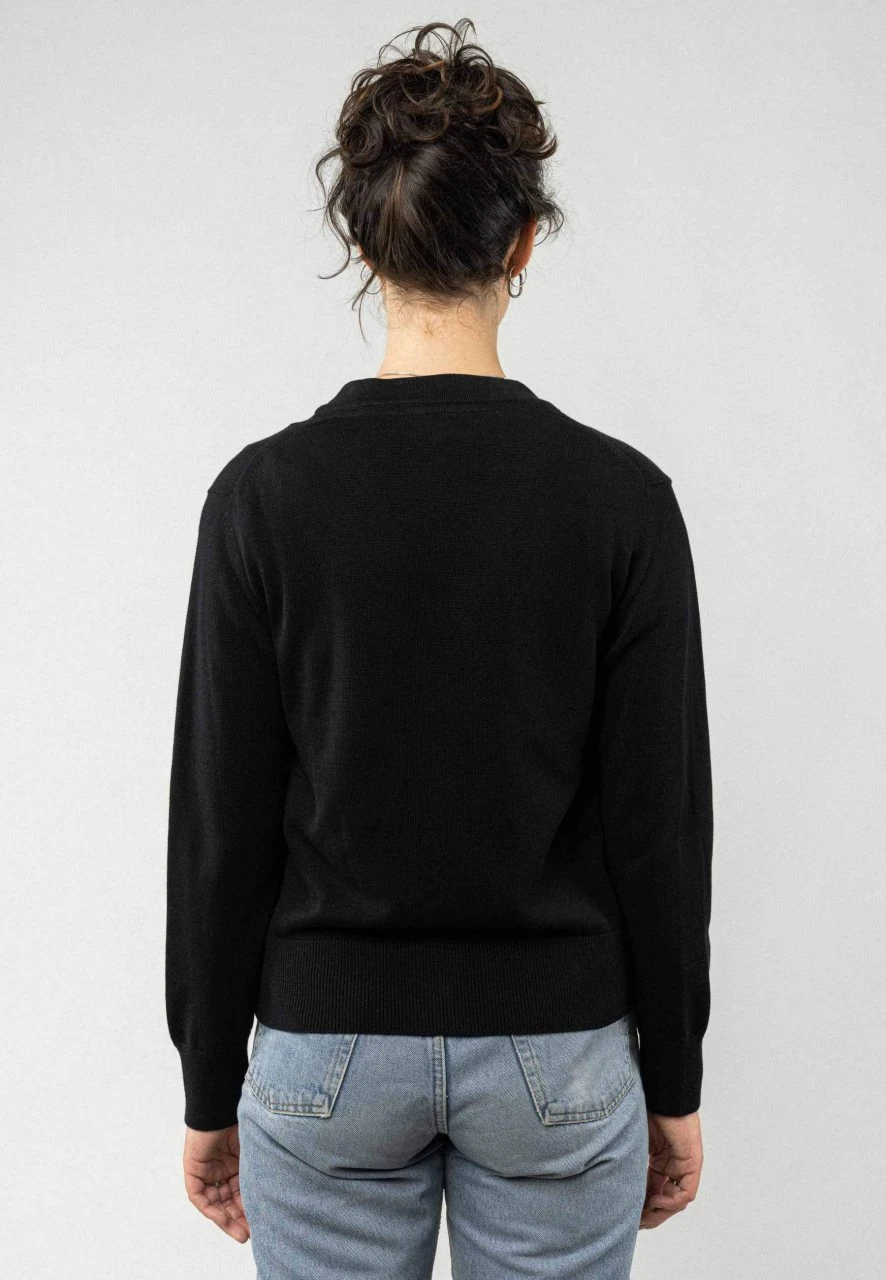 Dieser vegane Feinstrick Cardigan ist nach Fairtrade Cotton Standard zertifiziert und trägt das staatliche Siegel »Grüner Knopf«. Er erfüllt somit strenge Auflagen in Bezug auf den biologischen Anbau der Baumwolle sowie die schadstoffarme und faire Herstellung entlang der gesamten textilen Produktionskette.