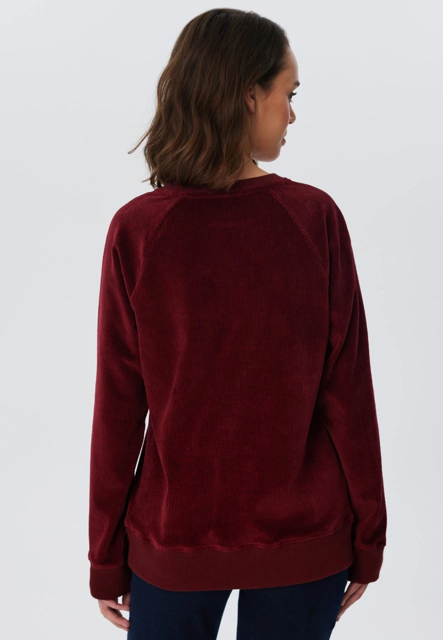 Bequem geschnittenes Nicki Cord Raglan-Sweatshirt aus reiner Bio-Baumwolle. Die charakteristische Rippenstruktur des Stoffes ist weich und hat je nach Lichteinfall einen samtigen Glanz. Die glatte Innenseite fühlt sich angenehm auf der Haut an. Die Rippbündchen am Rundhalsausschnitt sowie an den Ärmel- und Hüftabschlüssen sind durch ihre weniger lichtabhängige Farbe dezent abgesetzt.