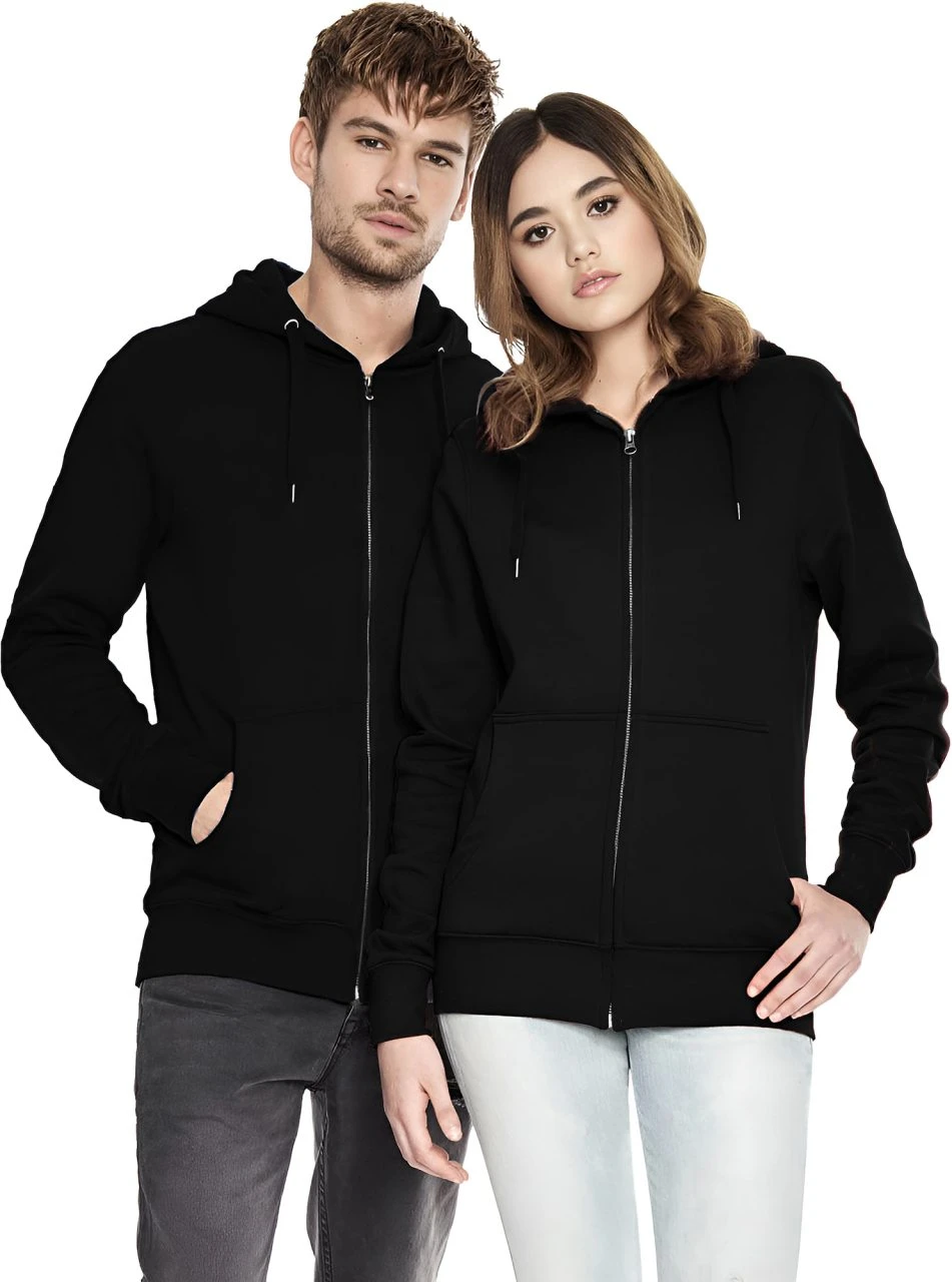 Klassische Kapuzen-Sweatjacke mit aufgesetzten Taschen. Das Material besteht aus reiner Bio-Baumwolle, ist flauschig weich und wärmt. Hüft- und Ärmelabschlüsse sind mit beständigen Bündchen versehen. Die Kapuze verfügt über einen Tunnelzug.