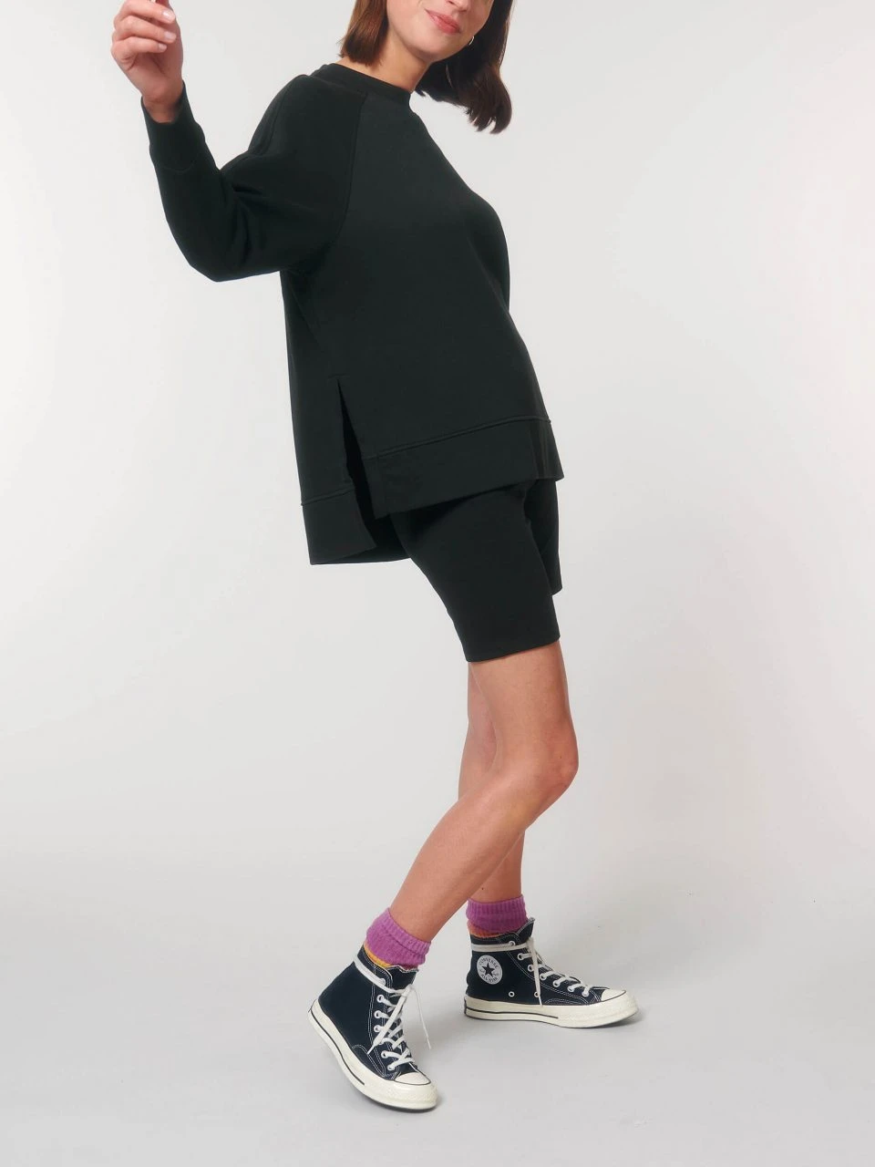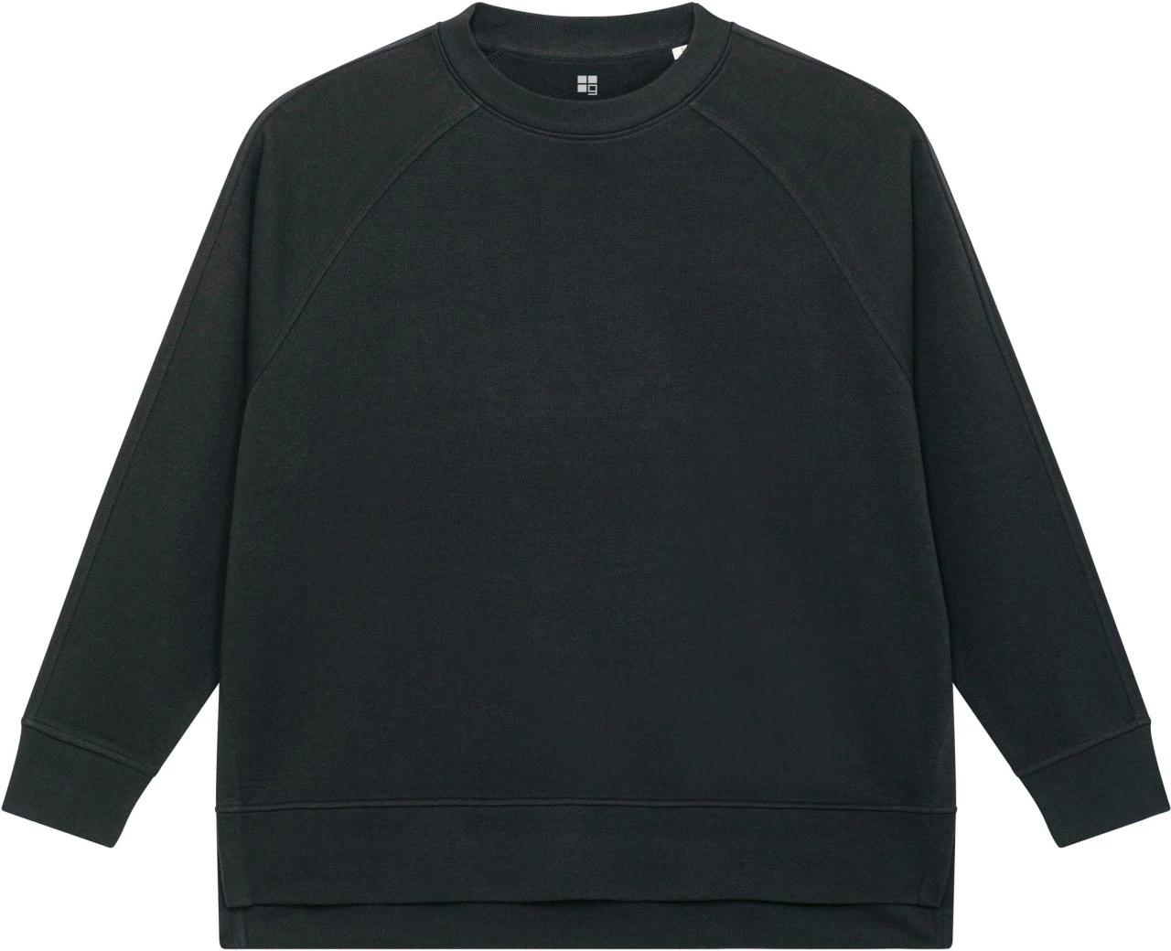 Weit geschnittenes Sweatshirt aus Bio-Baumwolle und 15% recyceltem Polyester. Der Oversized Pullover hat einen klassischen Rundhalsausschnitt und Raglanärmel, die mit breiten Rippbündchen versehen sind. Der abgenähte Hüftsaum besteht aus dem Oberstoff und ist am Rücken länger geschnitten. Für Bewegungsfreiheit und einen lockeren Fall des Sweaters sorgen seitlich tiefe Schlitze. Der dicke Terry Stoff (300 g/m²) liegt angenehm weich auf der Haut und bietet ein komfortables Tragegefühl.