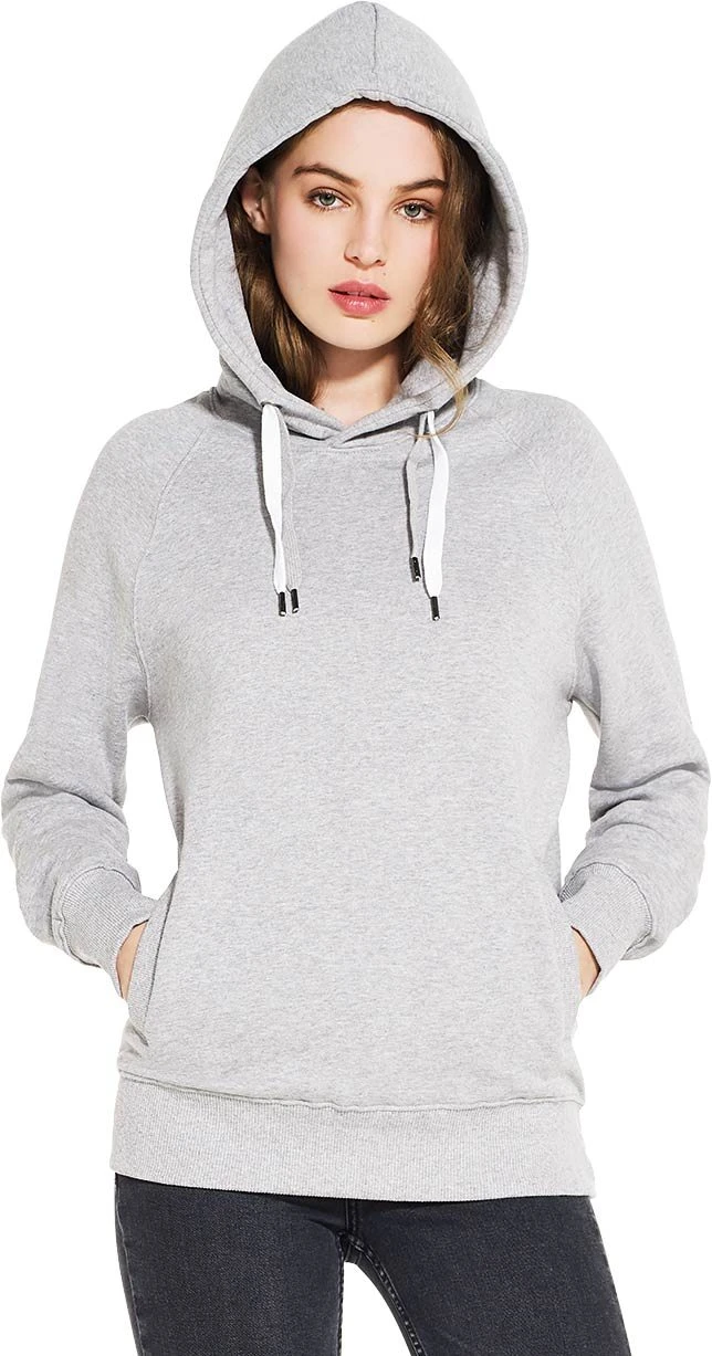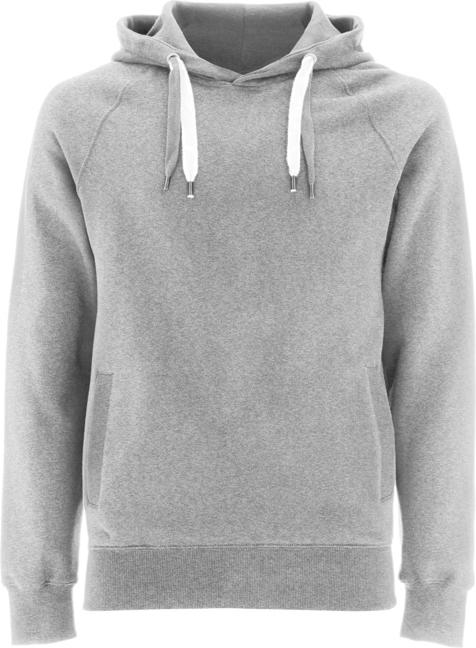 Grau melierter Kapuzenpullover aus Bio-Baumwolle. Ohne Motivdruck oder Logo-Applikation und im komplett einfarbigen Design: ein fair hergestellter Basic-Hoodie, der sich vielseitig kombinieren lässt.