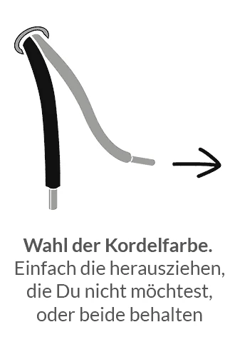 - doppellagige Kapuze mit zwei flachen Kordel (eine in der Farbe des Stoffs, eine in weiß. Ösen und Abschlüsse aus Metall)