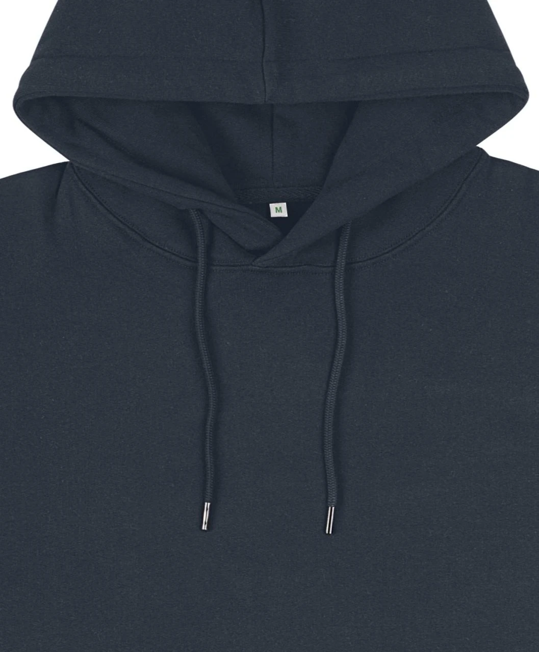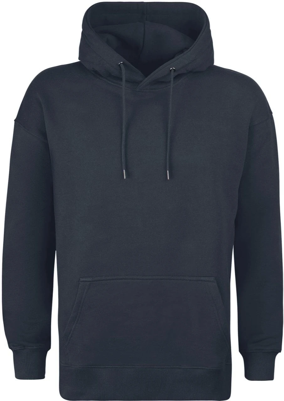 Dunkelgrauer Kapuzenpullover aus Bio-Baumwolle. Im komplett einfarbigen Design – ohne Motivdruck und Logo-Applikation – ist dieser Hoodie mit höherem Stoffgewicht und entspannter Oversize-Passform die ideale Wahl für kältere Tage.