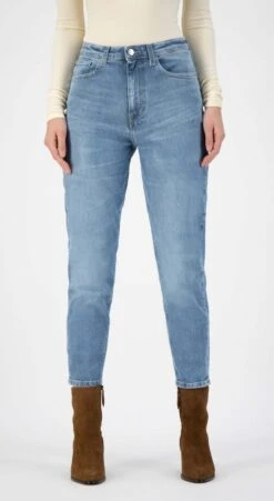 Eng geschnittene Jeans mit hoher Leibhöhe. Die High Waist Hose kommt mit einem aufgedruckten Logo auf der Rückseite sowie dezenten, silberfarbenen Nieten. Geschlossen wird diese Jeans mit einem Knopf und Reißverschluss.