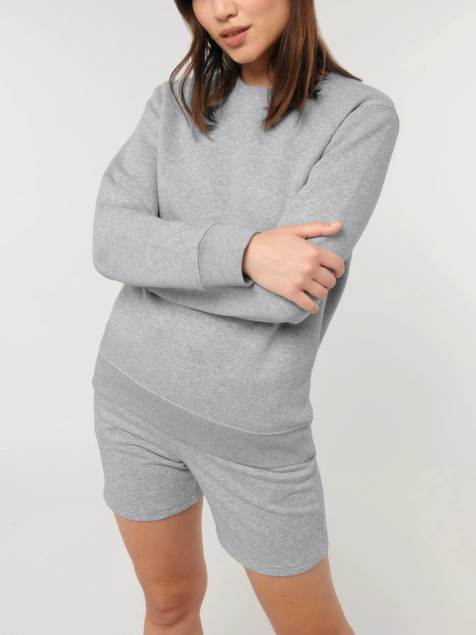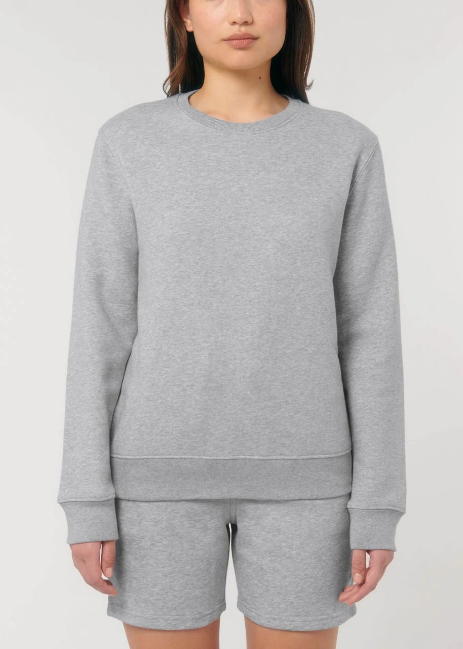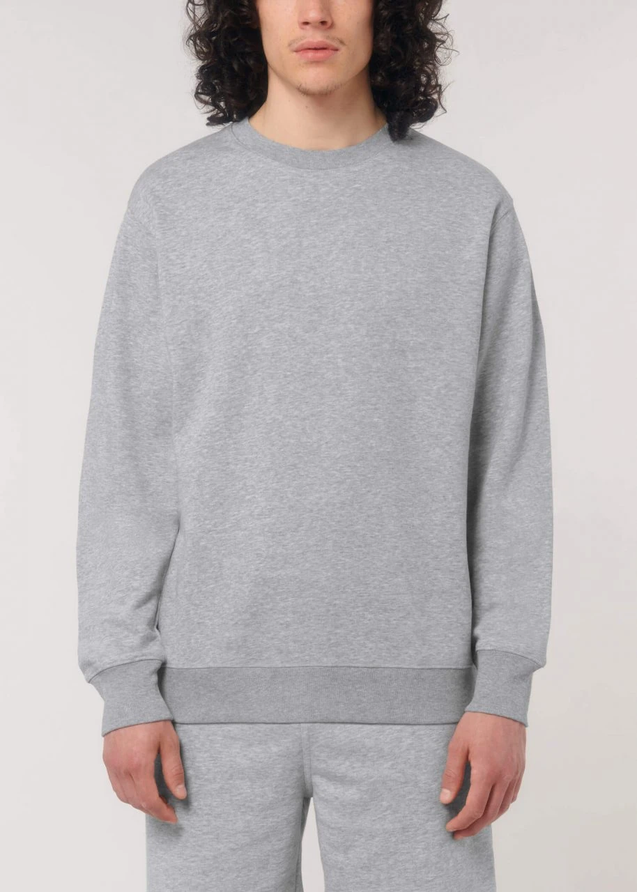 Medium Fit Sweatshirt aus Bio-Baumwolle und 15% recyceltem Polyester. Der klassische Rundhals-Pullover kommt im geraden Unisex-Schnitt. Hüft, Hals- und Ärmelabschlüsse sind mit einem feinen Rippbündchen eingefasst. Der Terry-Sweatstoff mit einem Gewicht von 300 g/m² und der Innenseite in Schlingenstruktur bietet das ganze Jahr über hohen Tragekomfort.