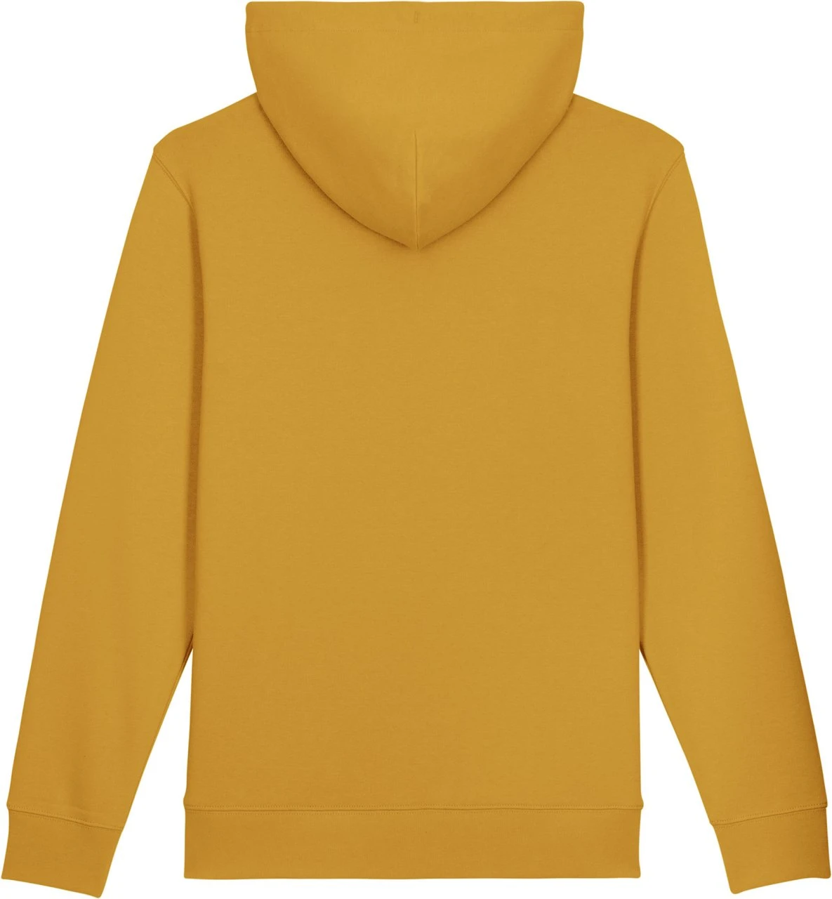 Hochwertiger, klassisch geschnittener Unisex Hoodie aus Bio-Baumwolle und 15% recyceltem Polyester. Der Kapuzenpullover kommt mit eingesetzten Ärmeln und einer großen Kängurutasche. Die Kapuze ist doppellagig und hat einen Tunnelzug mit gleichfarbigen Kordeln. Die Kordelabschlüsse und -ösen bestehen aus Metall. Hüft- und Ärmelabschlüsse sind mit breiten Rippbündchen eingefasst. Der Stoff ist schwer, weich und sorgt für ein komfortables Tragegefühl. Die Innenseite ist aufgeraut und liegt angenehm weich auf der Haut.