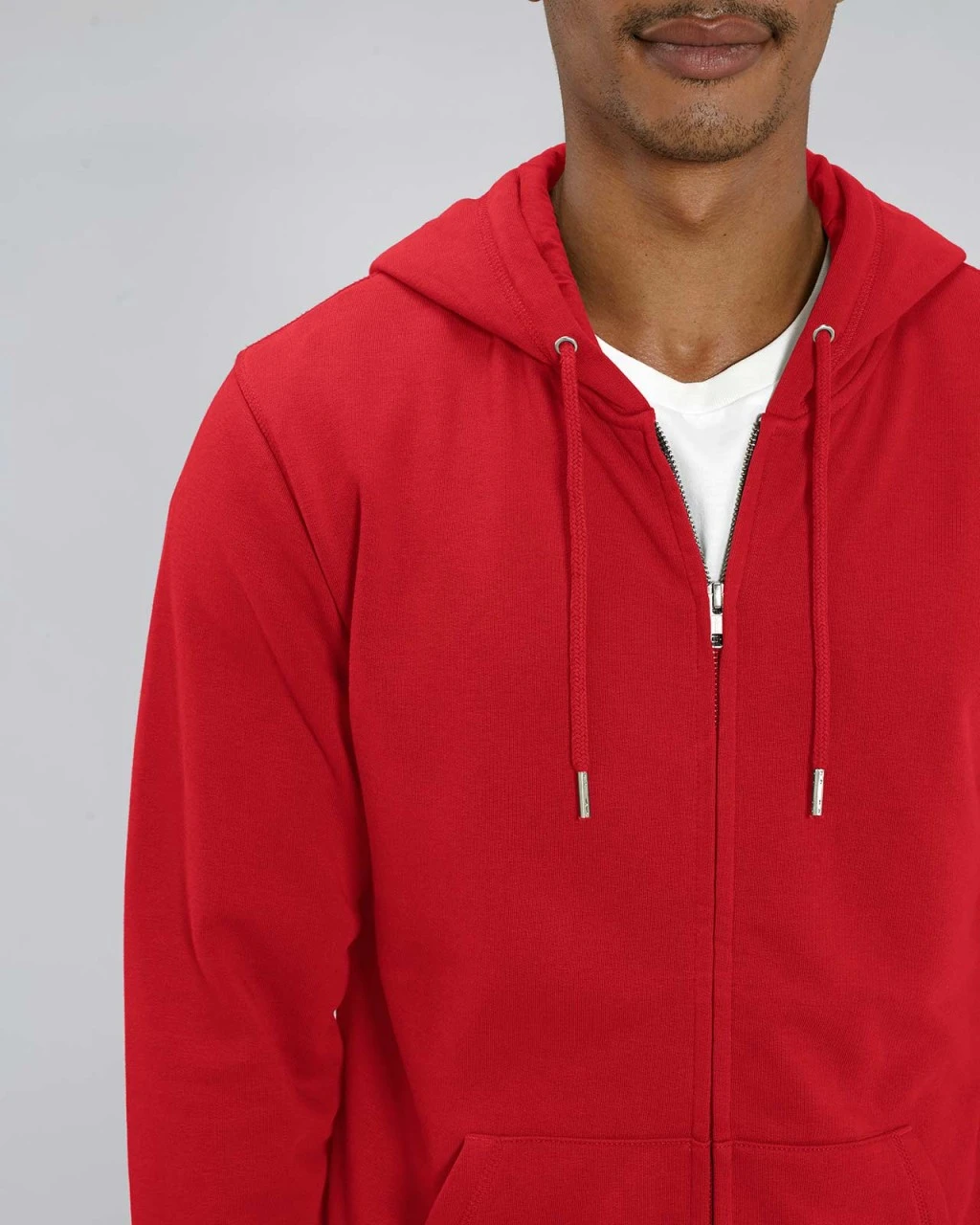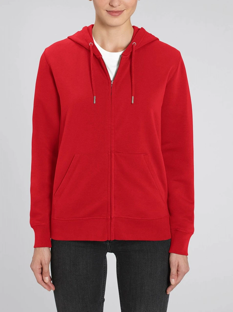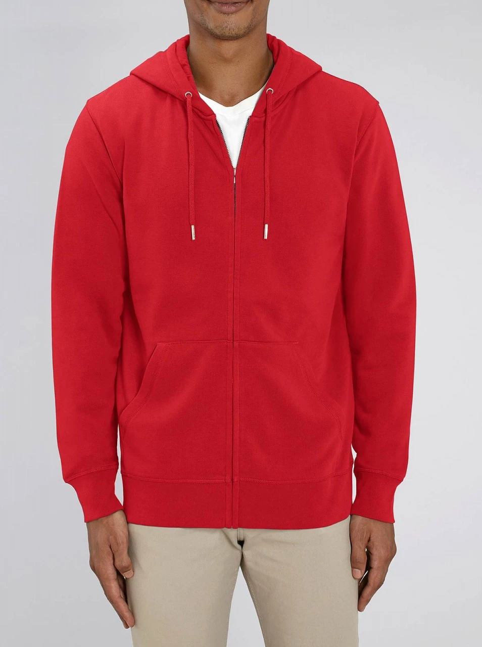 Hochwertige, klassisch geschnittene Unisex Kapuzenjacke aus Bio-Baumwolle und 15% recyceltem Polyester. Die Zip-Jacke kommt mit eingesetzten Ärmeln und großer Kängurutasche. Der Reißverschluss ist verdeckt und kaum sichtbar, wenn die Jacke geschlossen ist. Die Kapuze ist mit weichem Jersey-Stoff ausgekleidet und hat einen Tunnelzug mit gleichfarbigen Kordeln. Die Kordelabschlüsse und -ösen bestehen aus Metall. Hüft- und Ärmelabschlüsse sind mit breiten Rippbündchen eingefasst. Der Stoff ist dick, weich und sorgt für ein komfortables Tragegefühl. Die Innenseite besteht aus French Terry Stoff und liegt angenehm auf der Haut.