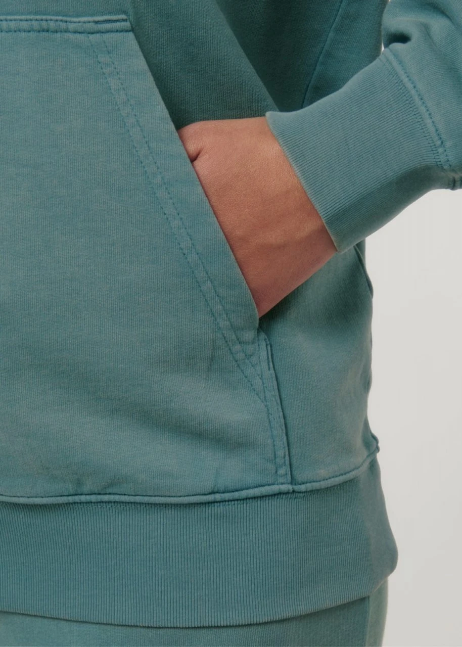 Die Herstellung erfolgt unter fairen und umweltfreundlichen Bedingungen. Die verwendete Bio-Baumwolle ist zertifiziert und erfüllt somit strenge Auflagen in Bezug auf den biologischen Anbau und die schadstoffarme Herstellung des fertigen Hoodie Sweatshirts.