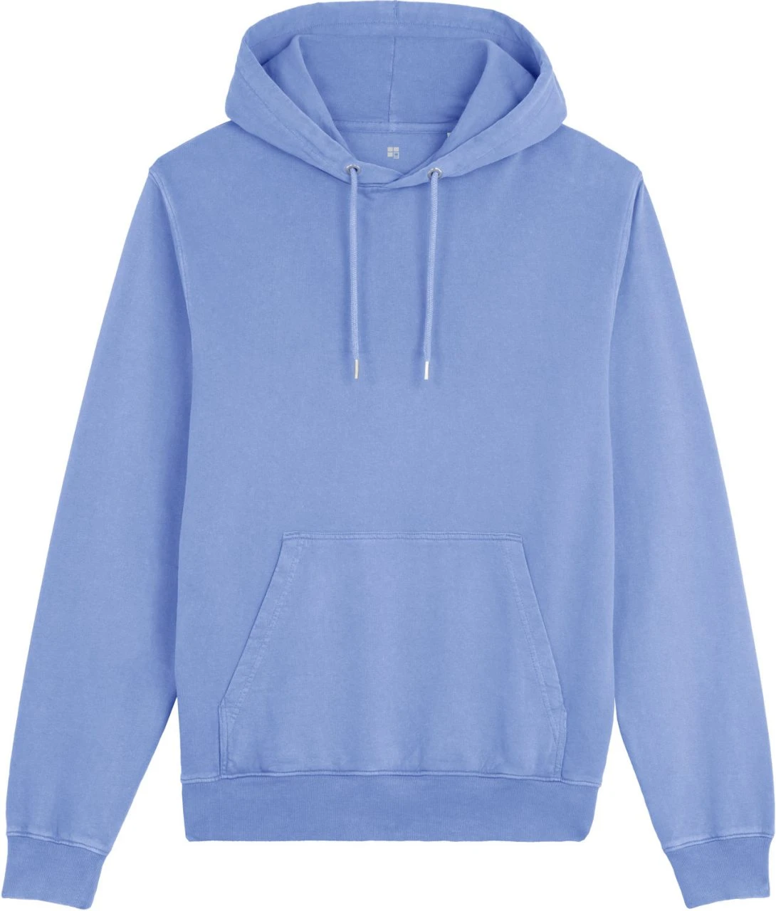Medium Fit Vintage Kapuzenpullover aus Bio-Baumwolle. Der Hoodie kommt im geraden Unisex-Schnitt. Die Kapuze ist doppellagig und hat einen Tunnelzug mit Kordeln in der Farbe des Hauptstoffs. Die Kordelabschlüsse und -ösen bestehen aus Metall. Hüft, Hals- und Ärmelabschlüsse sind mit Rippbündchen eingefasst. Die Kombination aus dem Stoffgewicht von 300 g/m² und luftigem Terry-Sweat macht den Kapuzensweater zur idealen Ergänzung für dein Outfit an milden Frühlingstagen und in lauen Sommernächten.