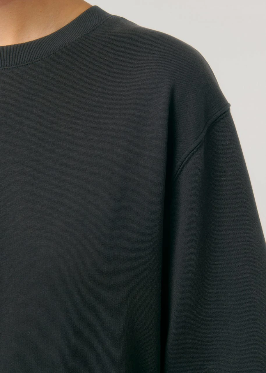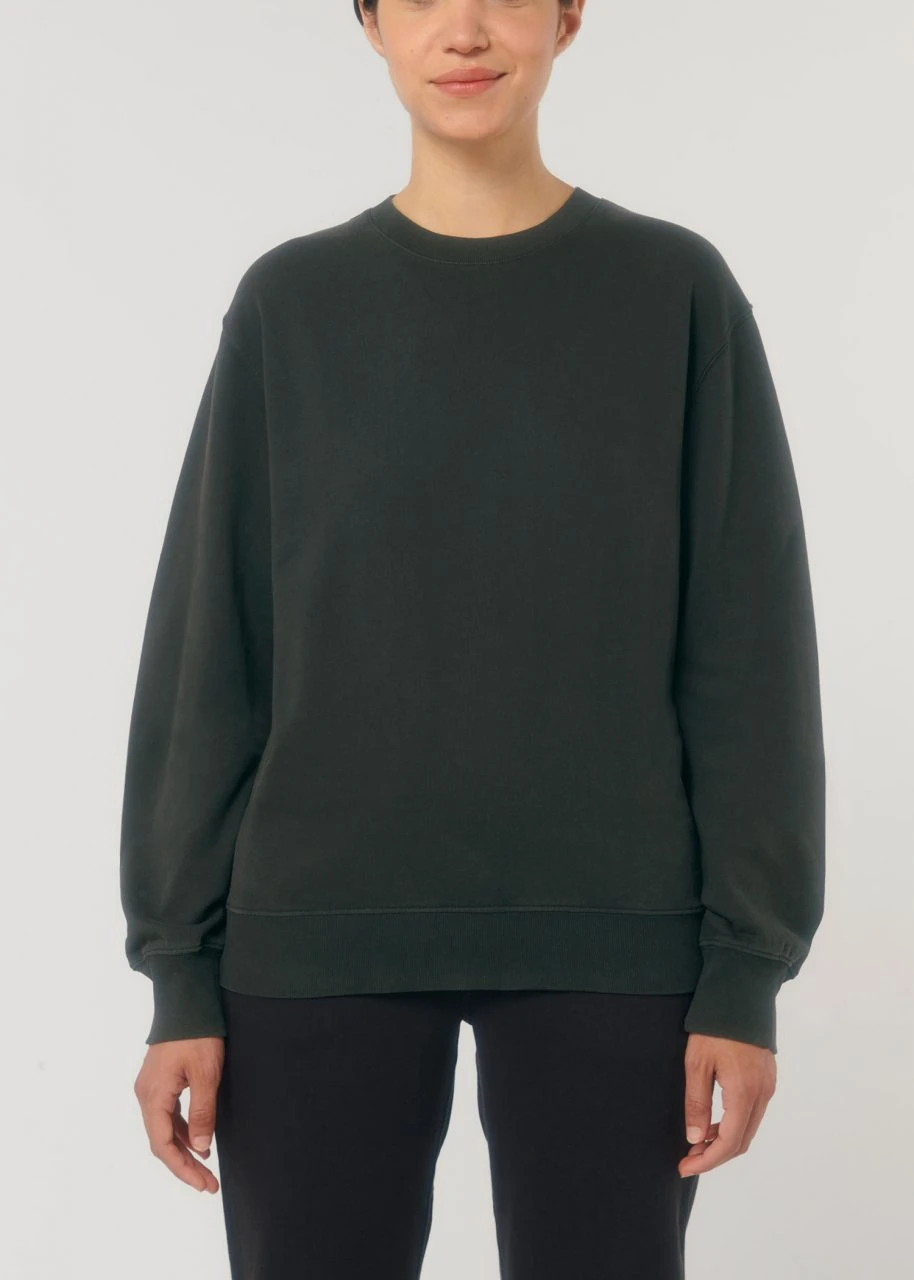 Medium Fit Vintage Sweatshirt aus Bio-Baumwolle. Der klassische Rundhals-Pullover kommt im geraden Unisex-Schnitt. Hüft, Hals- und Ärmelabschlüsse sind mit einem feinen Rippbündchen eingefasst. Der Terry-Sweatstoff mit einem Gewicht von 300 g/m² und der Innenseite in Schlingenstruktur bietet das ganze Jahr über hohen Tragekomfort.